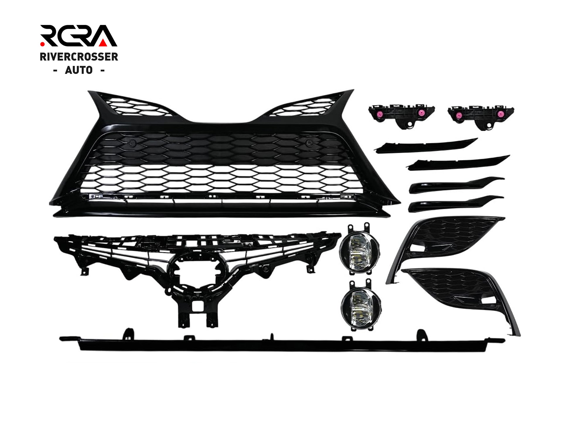 This grille set is aftermarket auto part. It is compatible with original grille assembly in 2021-2023 Toyota Camry SE/XSE. It is designed to replace directly the original grille assembly. It is made from high quality material which makes grille more durable and solid, so not only protection of front end of the vehicle but also airflow of radiator and engine will be improved.